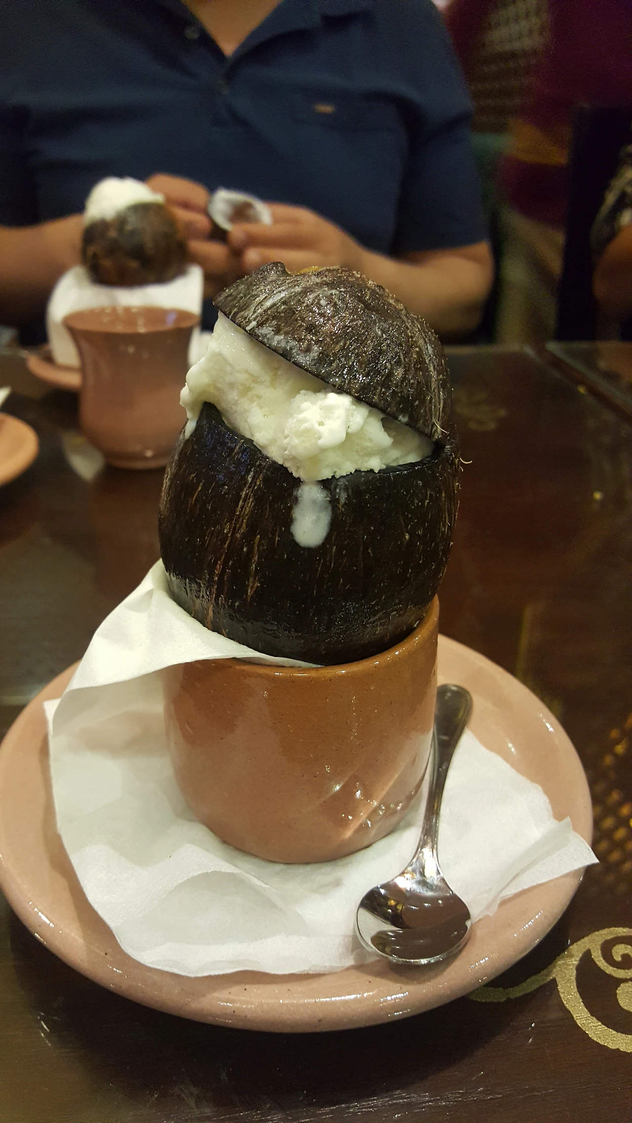 이렇게 나온 음식을 모두 비우고 여기서 유명한 디저트가 있다고 해서 시켰다. 디저트는 코코넛 아이스크림. 조금한 코코넛 안에 아이스크림이 담겨 나왔는데 어찌나 귀엽던지.