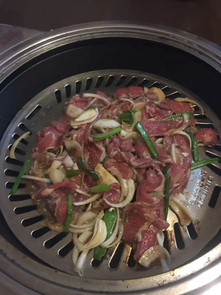 드디어 도착한 식당은 우리나라 일반 고깃집처럼 식탁 가운데 불판을 넣을 수 있게 되어 있었다. 이것부터 친구들은 신기해했다. 식탁 가운데 불을 올려놓다니. 특히 숯불이 들어와 테이블에 놓일 때는 우와~~~ 감탄사를 연발했다.