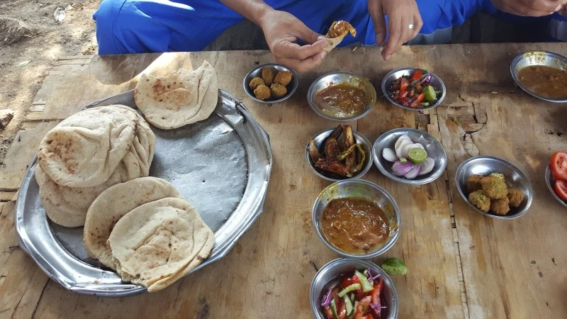 에이쉬(Aish)라고 하는 이집트 전통 빵, 타메이야(Tameyiya)라고 하는 콩을 갈아서 튀긴 음식(이집트에서 가장 인기 있는 거리 음식)과 샐러드. 마지막으로 가지 무침(한국에서는 좋아하는 사람이 거의 없지만 이집트 사람들은 정말 좋아한다.)이게 다였다.
