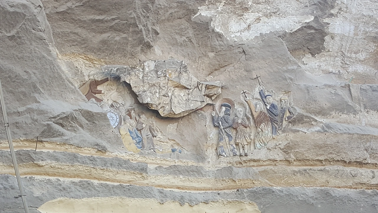 어떻게 이렇게 만들 생각을 했을까? 정말 궁금했다. 군데군데 깎아 놓은 벽면에 그려 놓은 예수 그림과 벽면 사이사이 지어 놓은 조금한 건물. 특히 예배 강단은 깊숙이 돌산을 깎은 부분에 자리해 있었다.