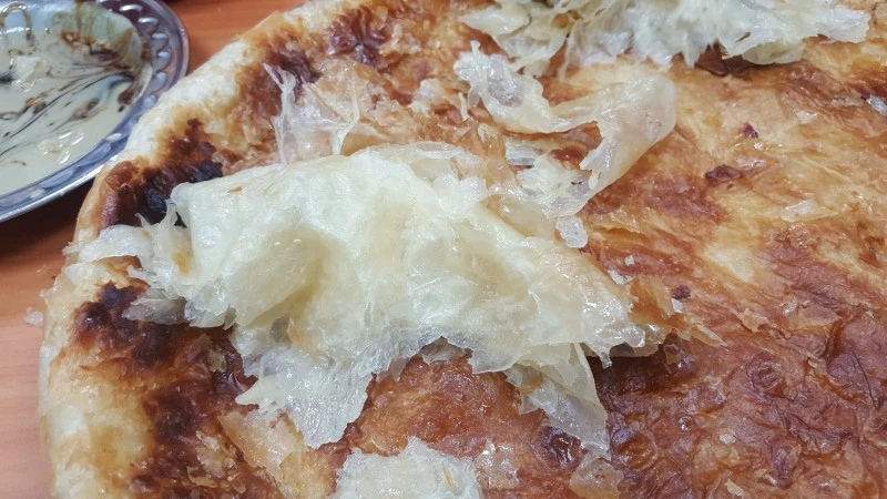 이 음식은 식당에서도 잘 팔지 않는 음식이라고 했다. 그래서 집에서 손수 만들어 가져왔다고 했다. 지난번 Sabry네 집에 갔을 때 먹어본 음식인데 역시나 언제 먹어도 맛있다. 이 빵은 얇게 만든 빵을 몇 겹 겹쳐서 만든 빵인데 정말 맛있다. 이름은 Fetteer meshaltet.