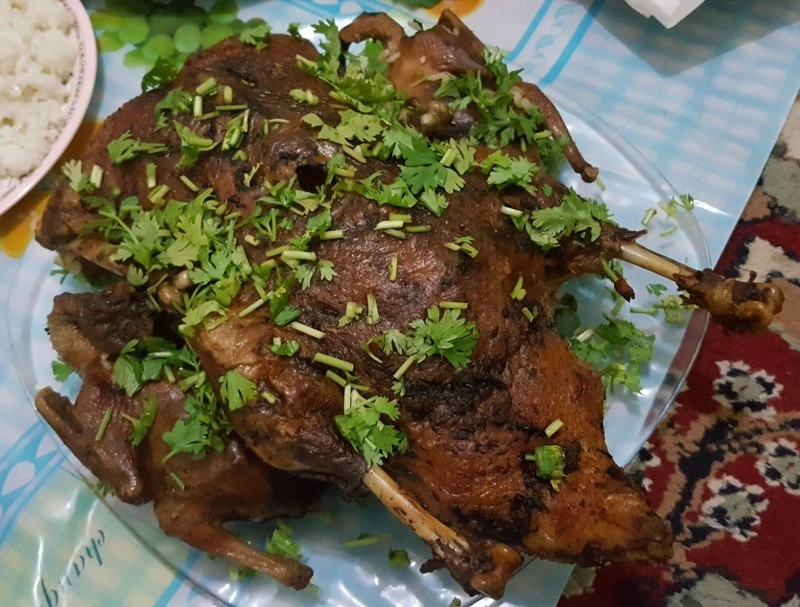 오리 구이, 비둘기구이, 이집트 순대 튀김, 흰쌀밥과 비둘기 볶음밥, 샐러드 그리고 이집트 국(오리 육수와 몰로케이야)까지. 지난번 음식이 또 떠올랐다. 특히 지난번에 먹어보지 못한 이집트 순대 튀김, 안에는 쌀과 고기가 들어있고 기름에 튀긴, 고소하고 내 입맛에 딱 맞았다. 정말 너무 맛있었다. 그리고 비둘기 구이가 나왔는데 정말 너무 조금했다. 그런데 머리까지 그대로 구워서 나와 조금은 보기가 그랬다. 하지만 음식은 이전에 먹었던 그 맛 그대로였다.