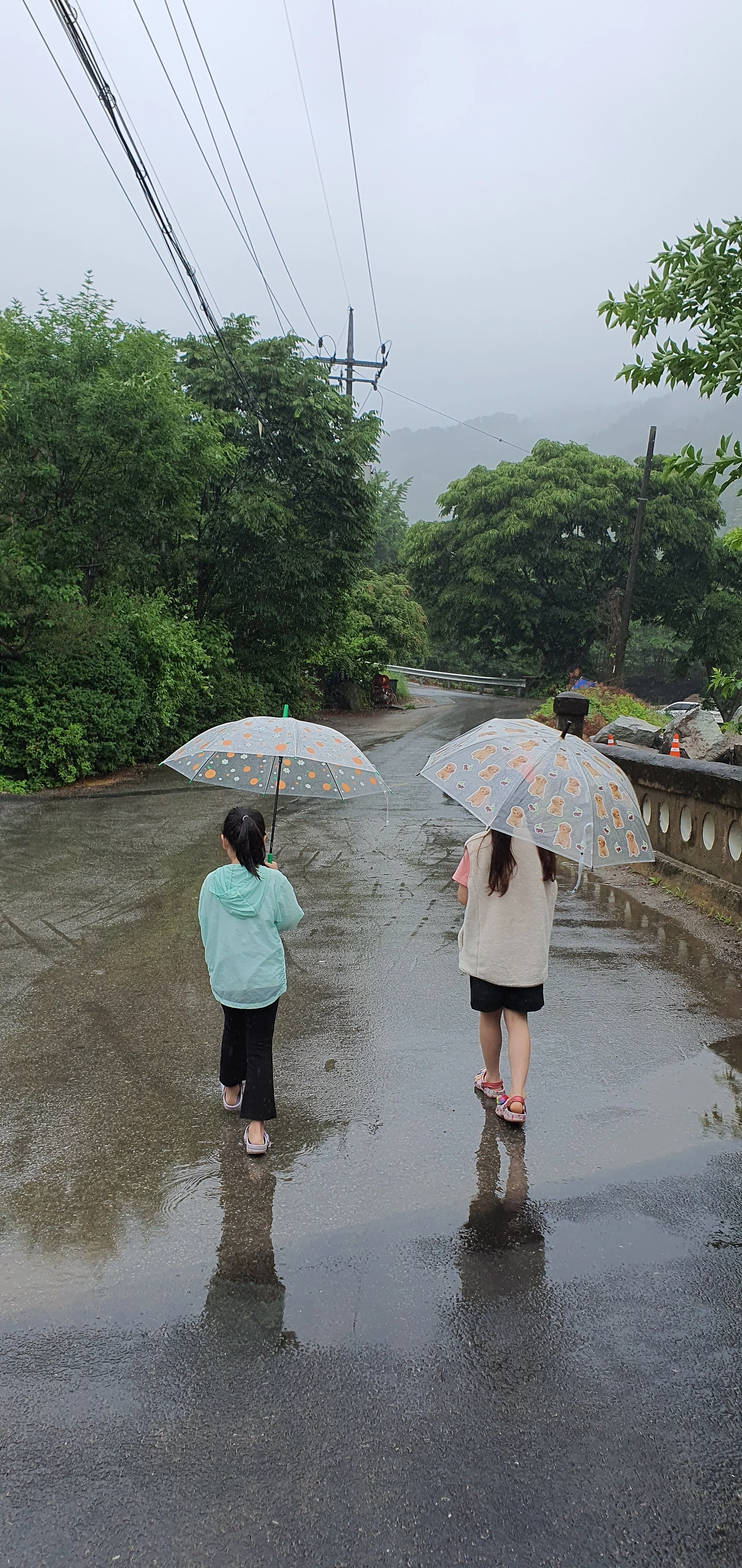 하지만 여행 가기로 한 며칠 전부터 날씨는 비로 바뀌었고 시간이 지날수록 1박 2일 모두 비소식으로 바뀌었어. 계곡 옆 펜션이어서 다같이 계곡에서 놀려고 했는데 날씨가 도와주질 않았지.