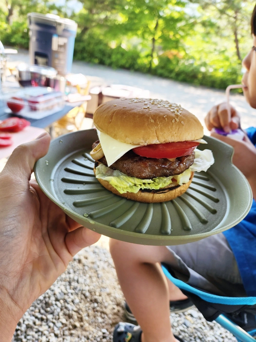 아침엔 지금까지 해보지 않았던 음식을 했어. 바로 수제 햄버거. 떡갈비를 샀던 우리, 햄버거 빵을 산 우빈이네. 역시나 마음이 통했어. 그것 말고도 양상추, 치즈, 토마토에 소스까지. 정말 맛있는 햄버거가 완성됐지. 시아랑 우빈이, 다빈이 모두 어찌나 잘 먹던지. 시아는 그 큰 햄버거 하나를 거의 다 먹어치웠어. 역시 잘 먹는 우리 시아. 먹는 것만 보면 엄마, 아빠는 걱정이 없어. 너무 잘 먹어서.