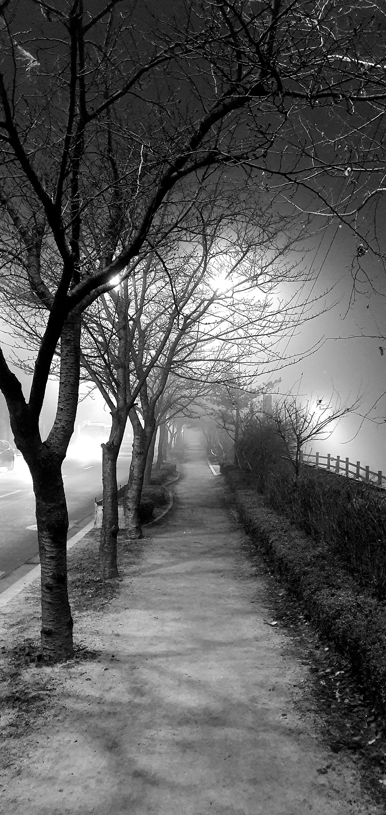 가로등 불빛은 안개와 함께 혼자 가는 그 길을 운치 있게 바꿔준다.