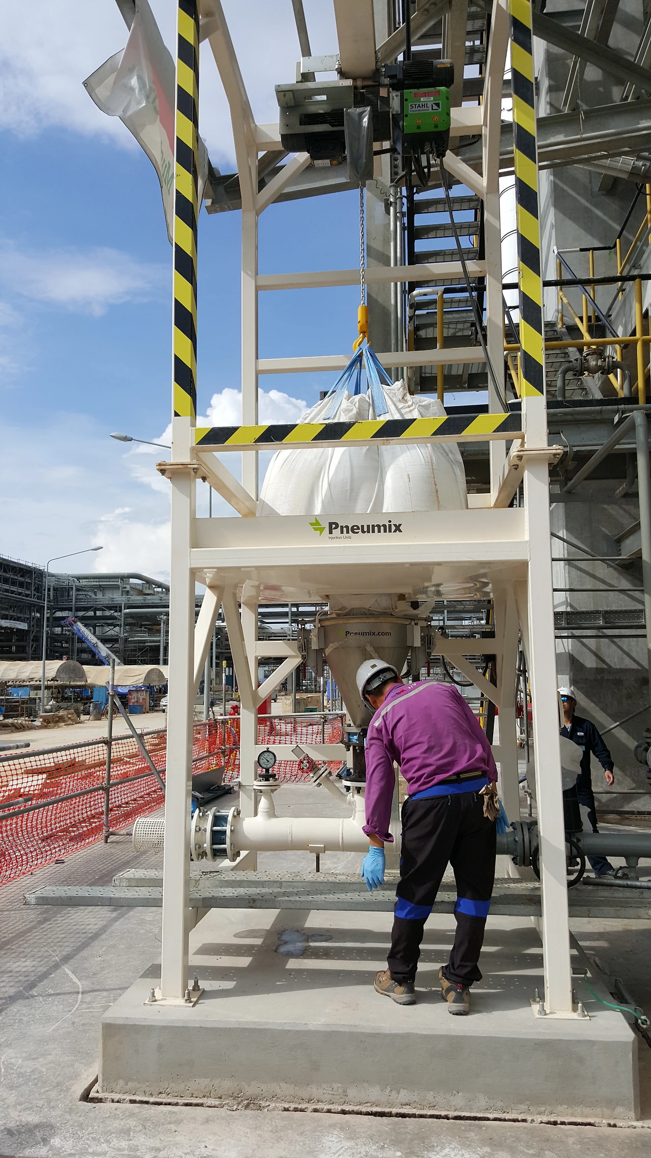 대부분의 Commissioning 작업이 마무리 되어갈 무렵, 대형 크레인과 호퍼(V자형 용기)가 현장으로 들어오고 있었다. 우리 장비와 작업자들은 점점 빠져나가고 있는데 반대로 대형 장비가 들어오다니.