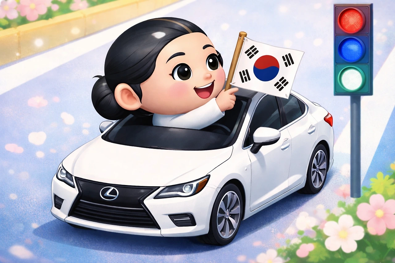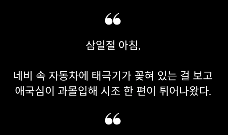 머리엔 꽃 대신 네비에 태극기 하나 꽂고,