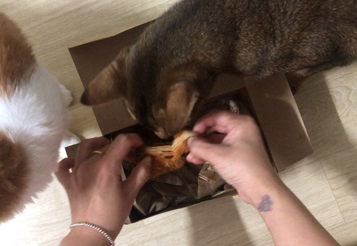 개묘차이가 있겠지만 보통의 고양이들은 사료를 주식으로 하면서 고양이에게 어울리는 간식거리를 먹거나 사람 음식을 먹을 때도 과일이나 치즈 빵 등 고양이들이라면 뿌리칠 수 없는 유혹의 음식들만 조금, 그것도 도도한 고양이 답게 한 두 입 먹고 수염에 뭍은 음식을 정성껏 구르밍 해서 닦아내기 마련이다.