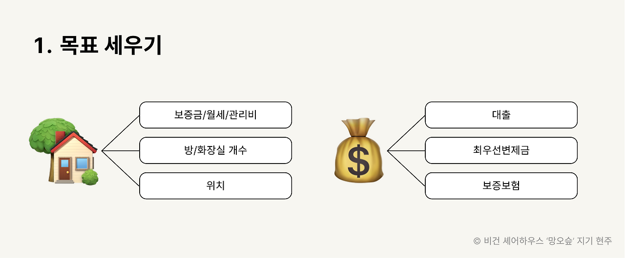 여기서 세운 목표로 부동산에 문의를 해요. '이러이러한 집을 찾고 있어요'라고요.