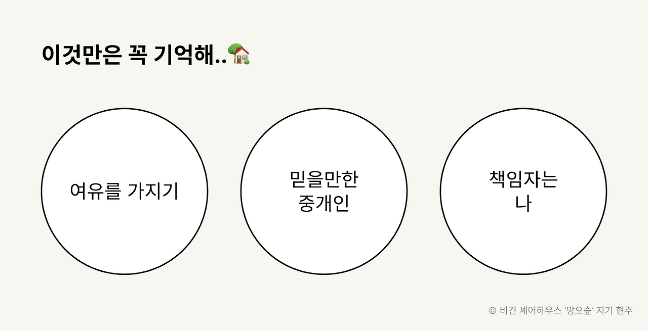 이번에 난생처음 집을 구하며 머리가 복잡했어요. 좋은 매물 놓칠까봐 조급함을 느끼고, 은행에서 거절 많이 당하고, 뉴스에서는 중개인도 믿지 말라는 말이 무척 좌절스러웠고.. 그래서 절망스러운 맘 잘 알지만, 포기하지 말고 여유를 가져봐요 우리.