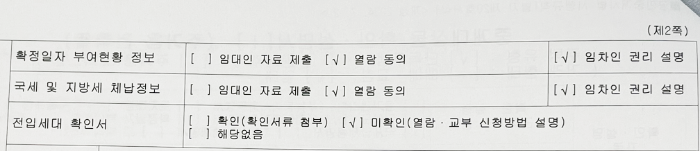 - 보증보험: 저희는 제가 HF로 보증보험을 가입하고, 만약 집이 다가구라 가입이 안되면 임대인이 임대보증보험에 가입하기로 조율했습니다.