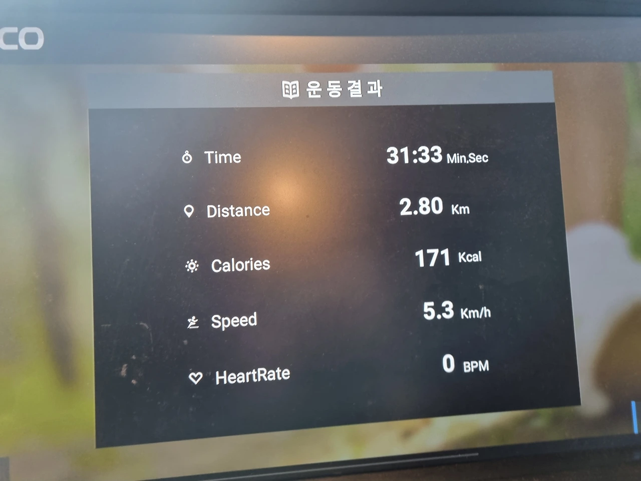 열심히 걸었다고 생각했는데 겨우 몇 분 지났을 즘 이어폰에서 흘러나오는 음악소리는 안들린지 오래고 모니터쪽으로 눈이 했다.
