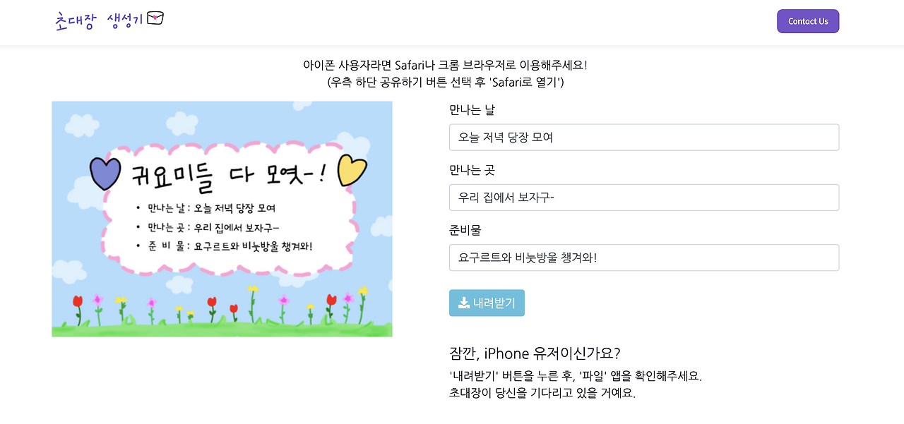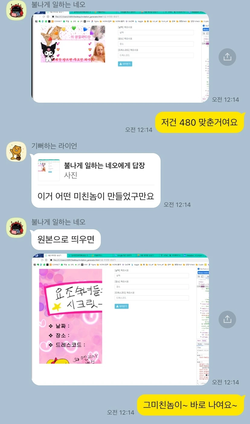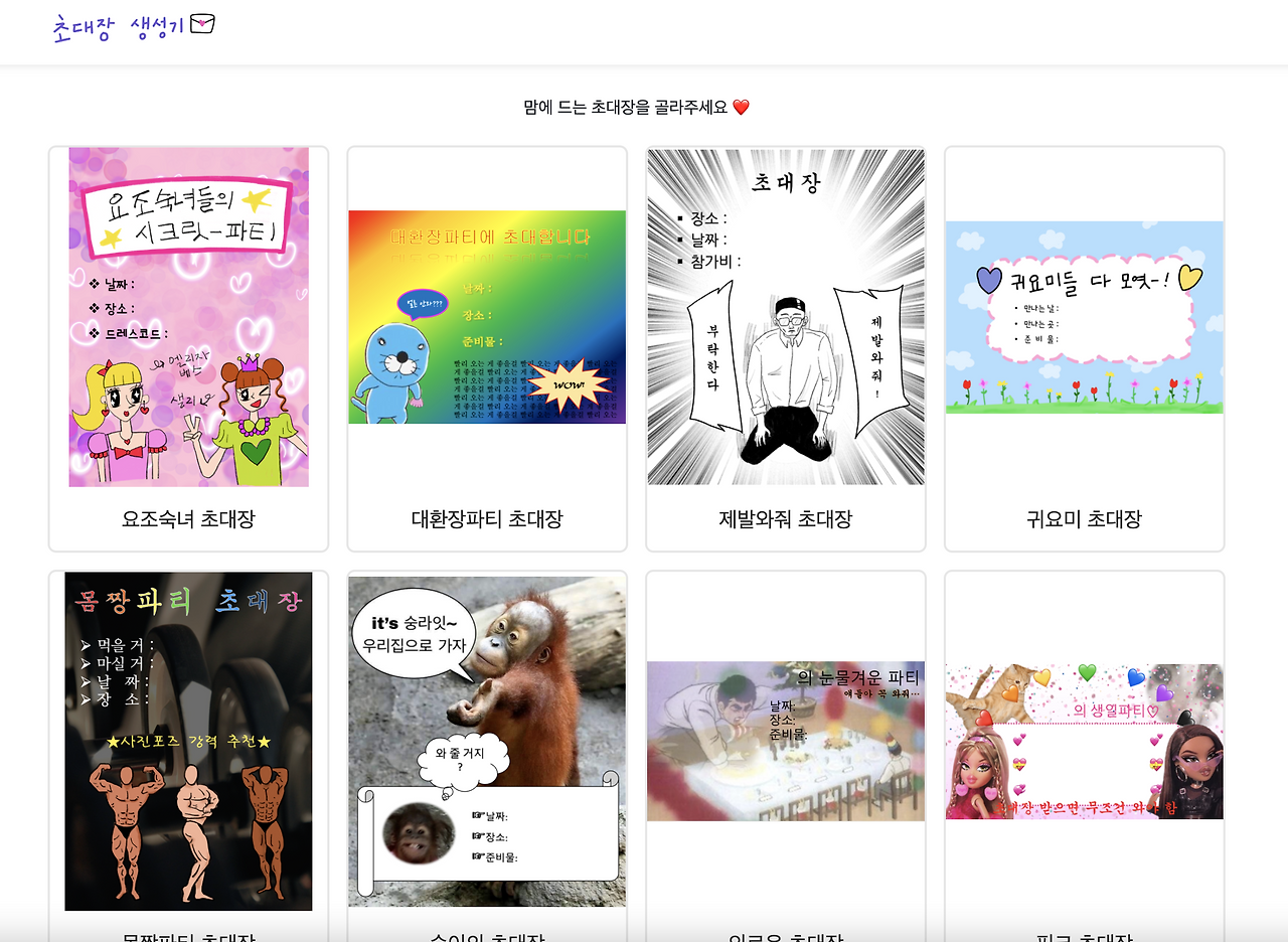 그렇게 결국 탄생한 우리의 B급 초대장 생성기!
