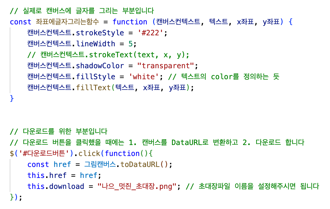 덕분에 템플릿에 텍스트 입력 + 이미지로 다운로드의 주요 기능을 구현할 수 있었다.