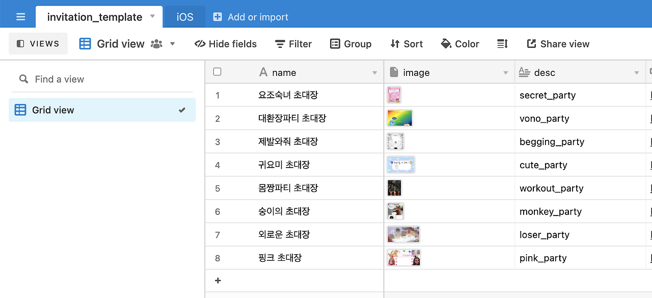 1) 초대장 템플릿 리스트 DB로부터 템플릿을 불러와 보여주고