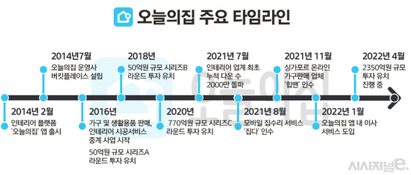 많은 스타트업이 그렇듯, 오늘의 집 역시 2022년 기준, 사상 최대 매출 달성에도 적자 폭이 확대된 상태였다. 이에 따라 자회사 인수를 통한 사업 확장으로 수익 다각화를 시도했다. 21년 8월에는 모바일 집수리 서비스 ‘집다’를, 11월엔 싱가포르 온라인 가구 플랫폼 ‘힙밴(Hipvan)’을 인수했다. 22년 1월에는 폐기물 수거 서비스 ‘오늘수거’를 운영하는 테크 스타트업 어글리랩에 5억원을 투자했다.
