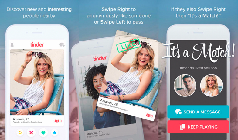 게이미피케이션을 이용해 성공한 대표적인 서비스로 데이팅 앱 '틴더'를 꼽을 수 있다. 틴더에서 마음에 드는 이성을 찾는 방식은 마치 포커게임을 연상시킨다. 엄지를 이용해서 마음에 들지 않는 카드는 왼쪽으로 스와이프 해서 버리고, 마음에 드는 카드는 오른쪽으로 스와이프 해서 가져간다. '매칭 성사'라는 불확실한 랜덤 보상 역시 게이미피케이션적인 요소라고 볼 수 있다. 틴더는 게이미피케이션 요소를 극대화해, 하루 스와이프 30억이라는 경이로운 기록을 달성하기도 했다.