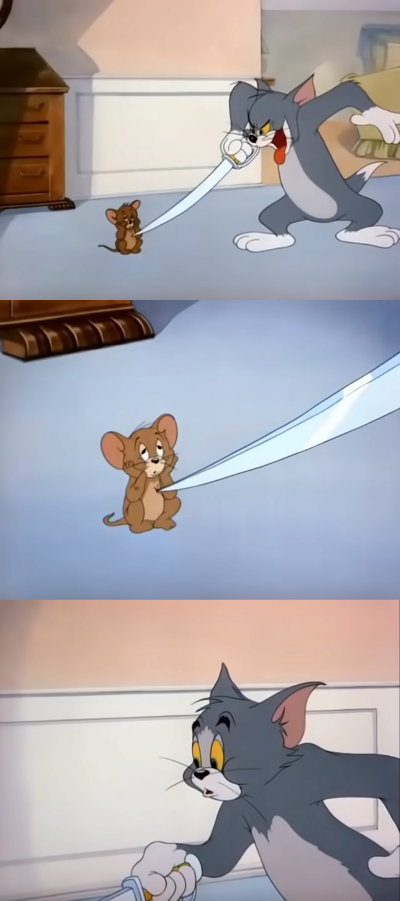 하지만 약육강식의 관점에서 본다면 톰은 늘 제리를 봐주는 것이라고 볼 수밖에 없다. 톰은 제리를 아끼고 사랑하기 때문이다! 그리고 제리도 그런 톰과 우정을 쌓아가고 둘은 앙숙인 듯 잉꼬인 듯 매일 웃음을 나눈다.