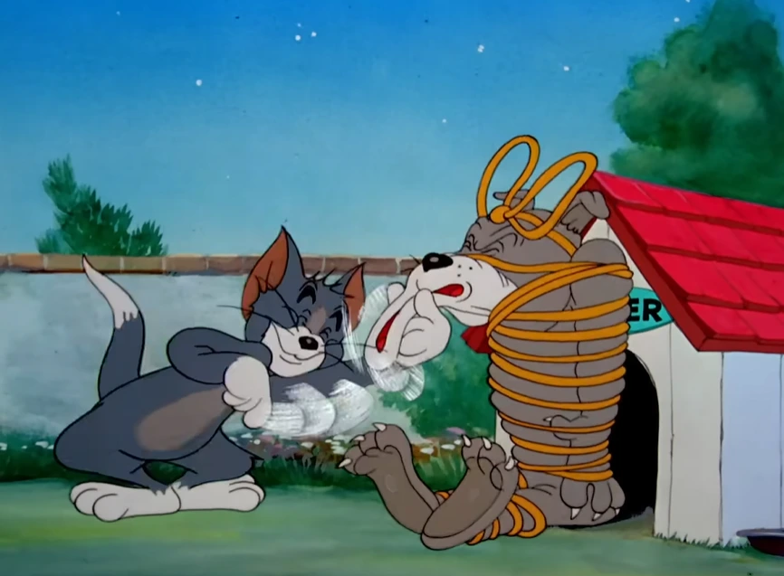 보통 고양이와 쥐의 싸움에서 쥐가 이긴다고 상상하기 힘들지만 여기서는 다르다. 제리는 발을 걸어 톰을 넘어 뜨리고 수염을 뽑아 버리고 심벌즈로 톰의 얼굴을 쳐서 납작하게 만든다.