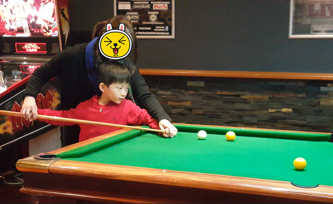애니에게 포켓볼을 배우는 제이든(좌) 지하철에서도 애니 옆에 앉아 이모의 DSLR 체험중(우)