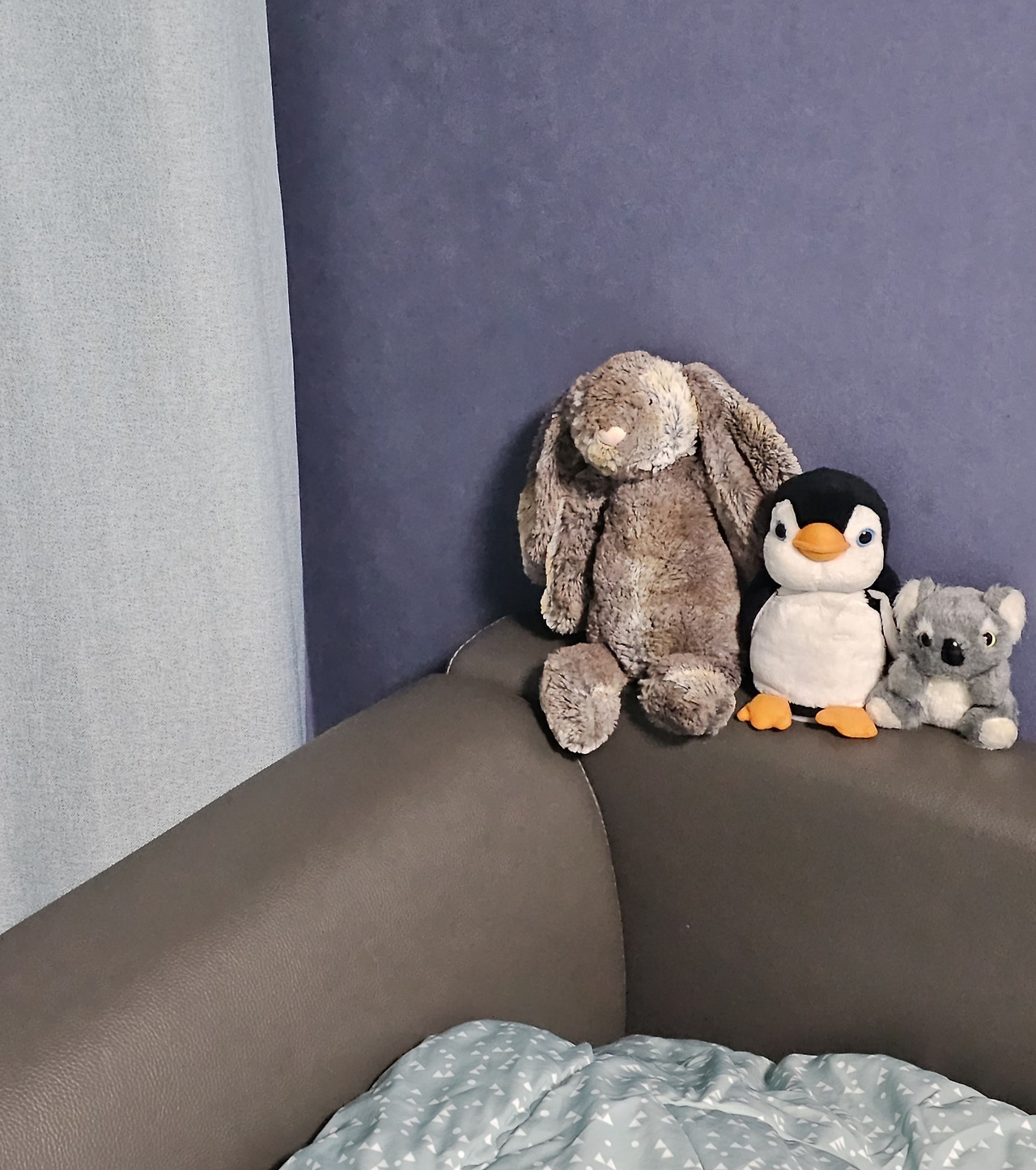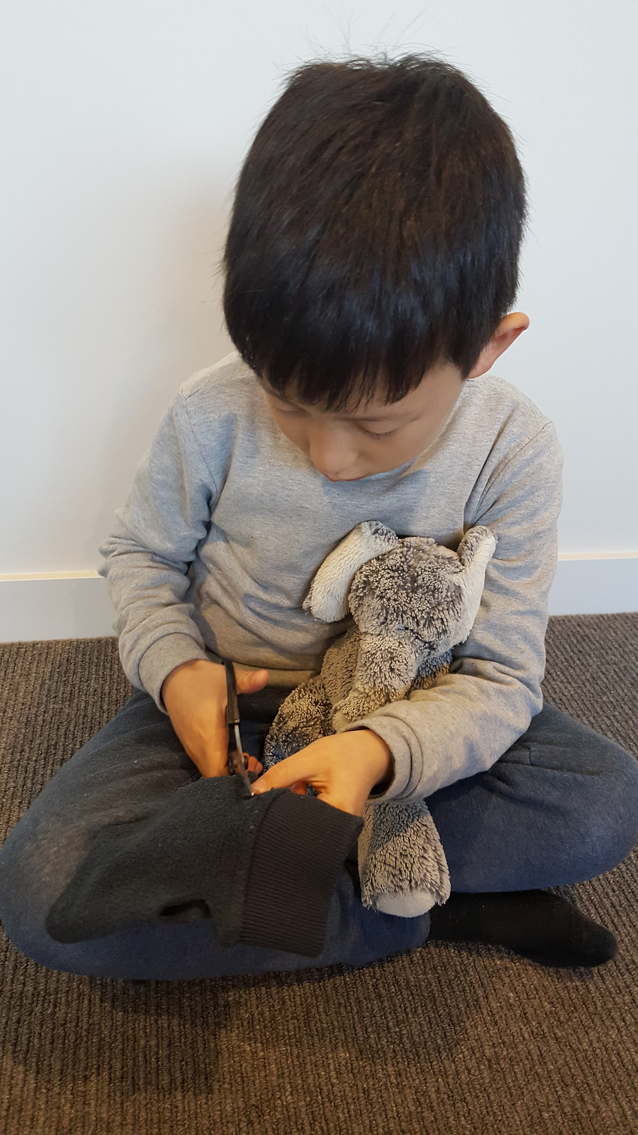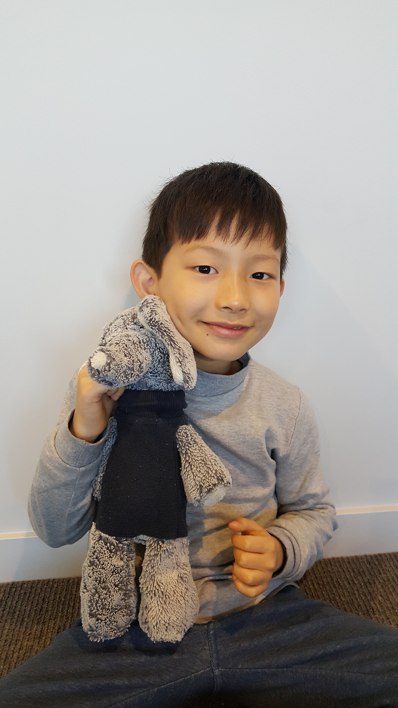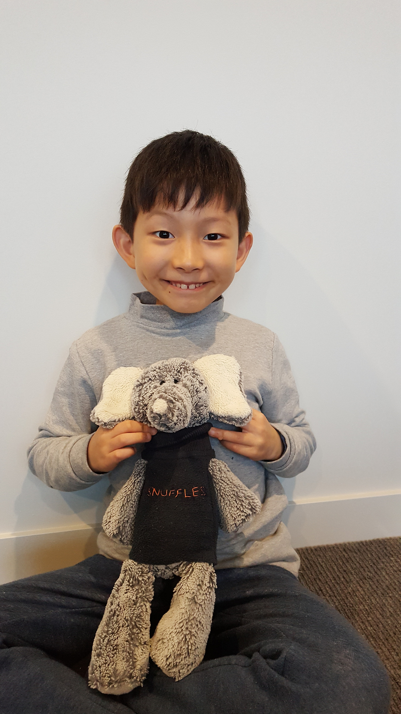 그렇게 스너플스와의 시간이 휘리릭 지나갔다. 제이든은 스너플스가 있는 동안 매우 즐거워했다. 호주에서는 초등학교 1학년이면 보통 20시, 늦어도 21시에 자는 것을 권장한다. 제이든도 21시에는 침실로 갔는데, 혼자 잠드는 것을 싫어하고 무서워해서 내가 같이 들어가서 옆에 있어줘야 했다. 제이든이 자고 난 후에 집안일도 해야 하고 공부도 하고 싶은데 제이든 옆에 함께 있어주다 보면 내가 먼저 잠드는 일이 허다했다. 그렇게 아침이 되고 나면 허무한 적이 많았다. 그런데 스너플스가 오고 나서는 제이든이 스너플스와 함께 자겠다고 했다. 내 입장에서는 제이든이 '혼자' 자는 것이고 제이든 입장에서는 스너플스와 '같이' 자는 것이긴 했다. 그렇게 스너플스는 나에게도 고마운 존재였다. 날이 추운데 옷 없이 다니는 스너플스가 안쓰러워 제이든은 스너플스를 손수건으로 싸매고 다녔다. 결국 나는 제이든과 함께 옷을 만들어주고 손바느질로 이름도 한 땀 한 땀 새겨주었다.