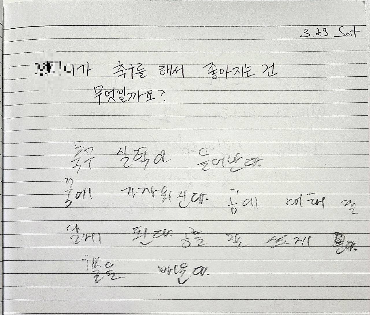 '이게 될까?...' 반신반의하며 글을 올렸습니다. 초등 4학년이면 수학, 영어에 슬슬 박차를 가할 시기라 안될 수도 있겠다 생각했어요. 하지만 저처럼 그 시기 공부보다는 운동이나 하고 싶은 걸 하게 해주는 엄마들이 계어요. 특히 그 중 마당발 엄마 한 분의 인맥으로 6명이 채워졌습니다. 공부보다는 아이가 원하는 축구를 시키고자 하는 엄마들이라서 지금까지도 몇몇 분과는 좋은 인연을 이어오고 있어요.