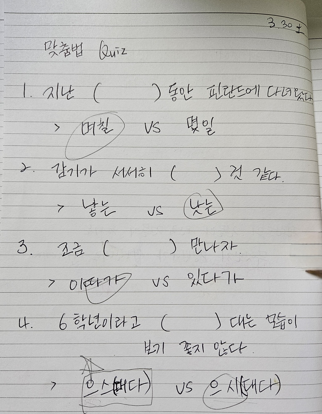 여러분도 아래 맞춤법 퀴즈 한 번 풀어보실래요?