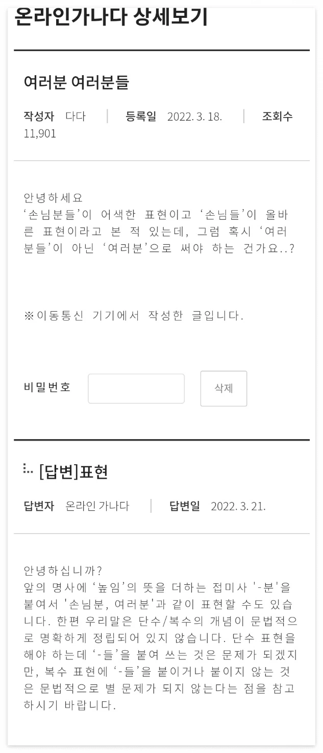 제가 통역을 전공했다 보니 아무래도 말이나 단어에 조금 더 예민한 편인데, 특히 '여러분들'이라는 말은 저의 짜증누름버튼이었어요. 분명 '여러'에 복수가 표현되어 있는데 왜 또 '들'을 붙이는가... 싶어서였죠. 통역할 때 그렇게 하면 안 된다고도 배웠고 마치 '역전앞'같은 쓰지 말아야 할 겹말이라고 철석같이 믿고 있었어요. 그런데 요즘 아나운서도 '여러분들'이라는 말을 쓰는 거예요!