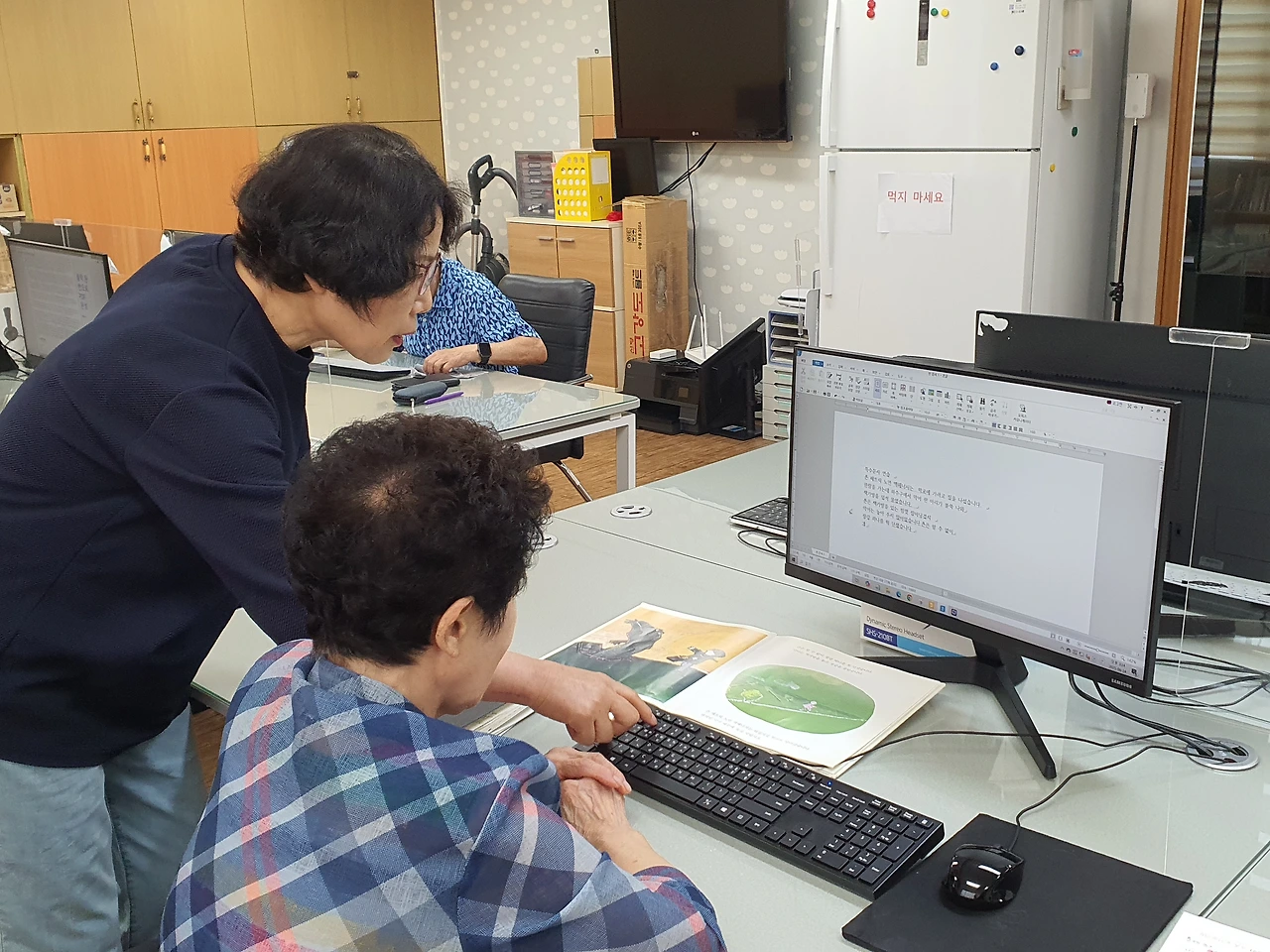 오후에는 종합복지관에서 컴퓨터기초를 가르친다.