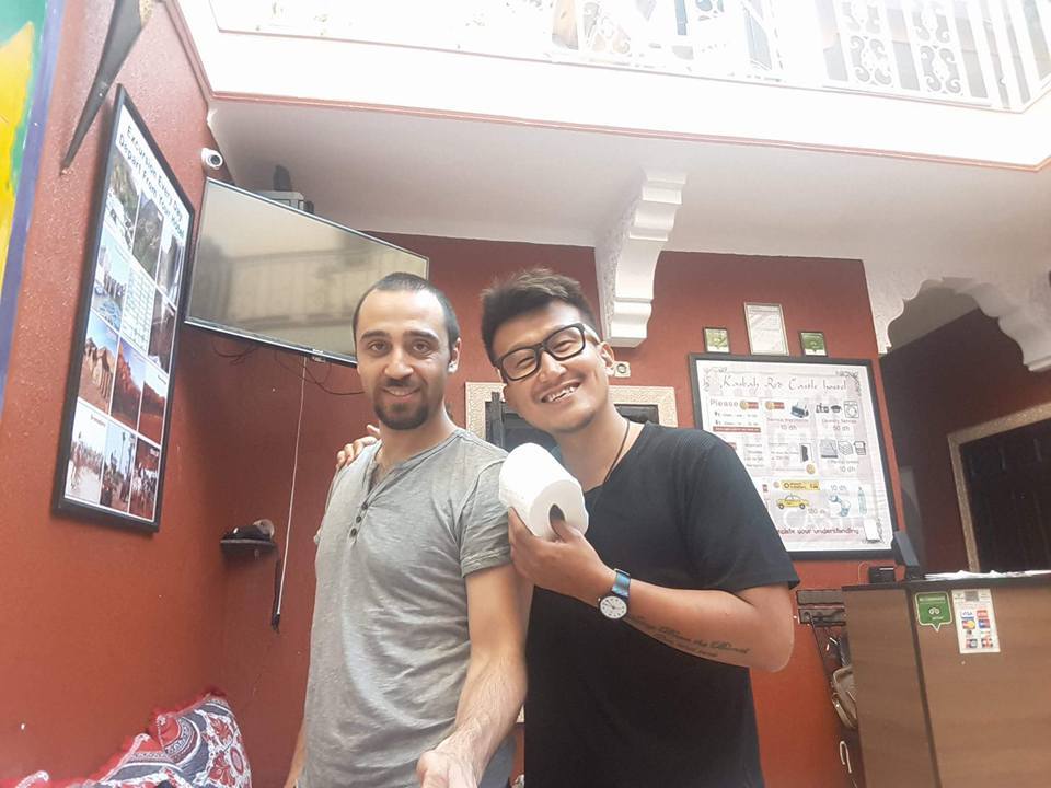 그는 업무차 마라케시에 왔기 때문에 , 아침 9시에 출근을 해야 했다. 일을 하고 돌아보면, 내가 공항으로 이동해서 없을 거라고 하니, 겨우 하룻밤을 같이 지냈을 뿐인데, 너무도 아쉬워한다. 그러면서 선물을 준다. 너의 뱃속 상태를 보면, 이게 꼭 필요할 거라고. 자신이 사용하던 두루말이 화장지를 내게 준다. 이런 투박한 선물이 좋다. 내가 너무도 좋아하니, 그도 신이 났다. 사진을 찍어, 자기 가족들과 친구들에게 자랑한다. 네가 내년에 오면.. 터키에서 만나게 해주겠다고. 이놈의 인기란...