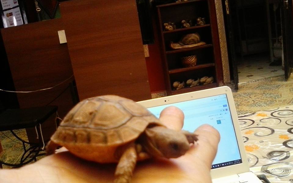 마라케시 숙소에서 컴퓨터를 하던 중, 꼬마 거북이가 옆을 지나갔다. 반갑고, 신기해서 한참을 놀았다.