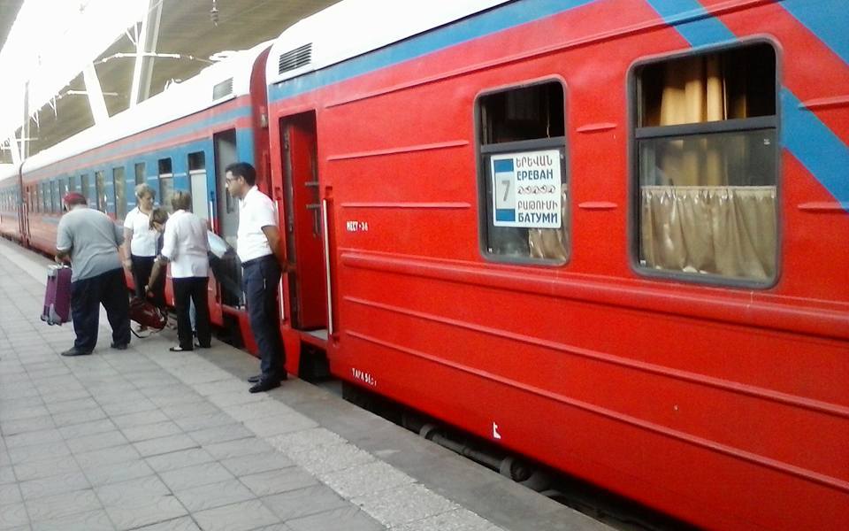 트빌리시에서 예레반까지 운행하는 야간열차에서 내리며. 침대칸으로 여행하니, 숙박비도 절약하고 좋다.