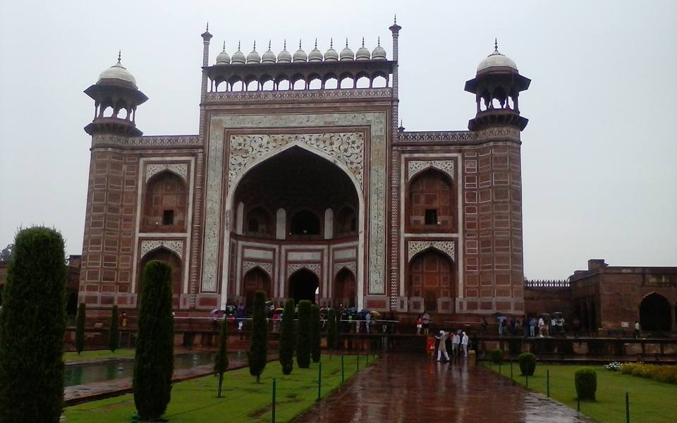 이 때문에 확 짜증이 올라왔지만, 그냥 쿨하게 결재를 했다. 매표소 옆에서 관계자라고 보이는 사람이 이것저것 유의사항을 설명해줘서 듣고 있었더니, 결국에는 자신을 가이드로 고용하라는 호객꾼이었다. 그를 거절하고, 타지마할 입구에 들어섰더니, 검색대에서 가방에 들어있던 노트북과 배터리, 줄넘기 등이 걸려서 한참 떨어진 락카룸에 짐을 맡기고서야 입장할 수 있었다. 이때 폭우가 계속 쏟아지고 있어서, 이미 온몸은 젖었고, 그 와중에 땀까지 나니, 짜증수치가 거의 최고조로 향했다. 그리고 타지마할에 입장했는데...