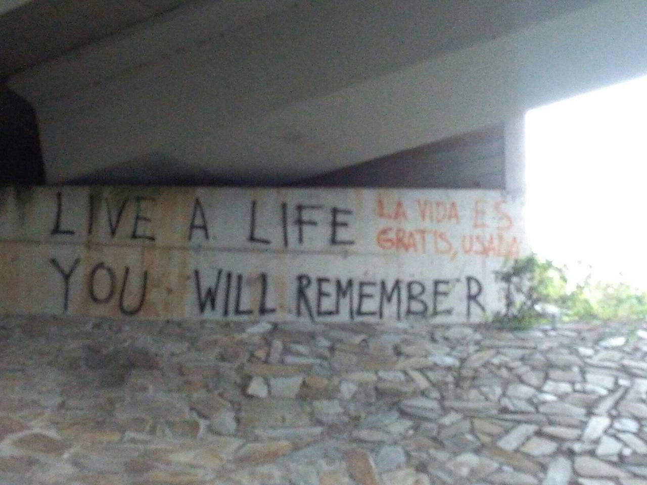 아침에 10km 정도를 걸었고, 중간에 버스로 20km 정도를 이동하고 보니, 그래도 명색이 순례길인데... 버스로 이동한 것보다는 더 걸어야겠다는 생각에 내리는 빗속을 걸었다. 버스에서 쉬면서 몸 컨디션을 돌아와서 제법 걸을만 했다. 몸 컨디션이 돌아오고 나니, 다시 풍경이 보이기 시작했다. 그렇게 걷다가, 고가 다리 밑을 지나다가, 누군가가 써놓은 낙서를 보게 되었다. “Live a Life.”