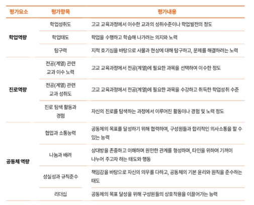모든 입학 전형에서는 학생의 합격과 불합격을 가르는 평가 자료가 필요합니다. 다만, 정시는 수능 성적이라는 평가 자료를 정량적(양, 객관적, 학업성취도, 시험점수 등 수치화된 정보를 기준으로 평가)으로 사용하고, 수시는 '내신 성적'이라는 평가 자료를 정성적(양, 객관적, 학업성취도, 시험점수 등 수치화된 정보를 기준으로 평가)으로 사용하는 차이가 있을 뿐입니다.