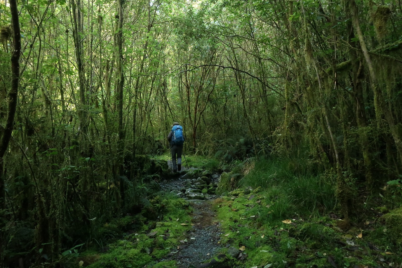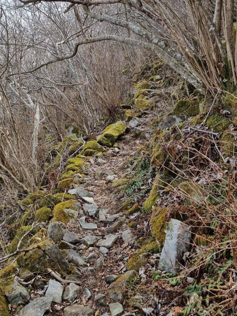 왼쪽은 좁고 뒤죽박죽 제멋대로인 돌길이다. 헛디디면 분명 어딘가 부서질 거 같아 발에 힘이 들어간다. 아래만 보고 걷다 고개 드니 길 따라 돌과 나무를 포근히 덮은 이끼가 눈길을 잡는다. 녹색 이끼 이정표가 무채색 산속을 조용히 안내한다.