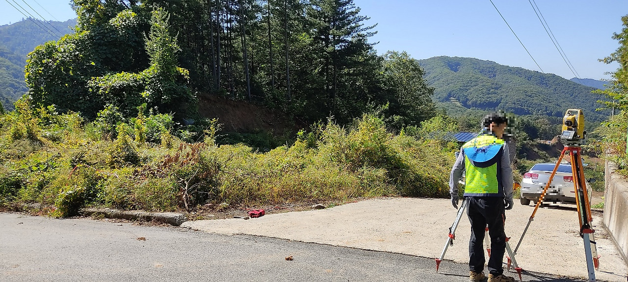 우선 개발행위허가를 진행하기 위해 지역 측량사무소에 의뢰를 맡기면 지적공부에 등재된 내용을 토대로 지적측량을 해준다. 그리고 토목설계를 위해 지형을 반영한 현장 측량도 더불어서 진행한다. 측량사무소에서 대략적인 경계를 확인할 수는 있으나 경계점에 대한 법적인 효력은 없다.