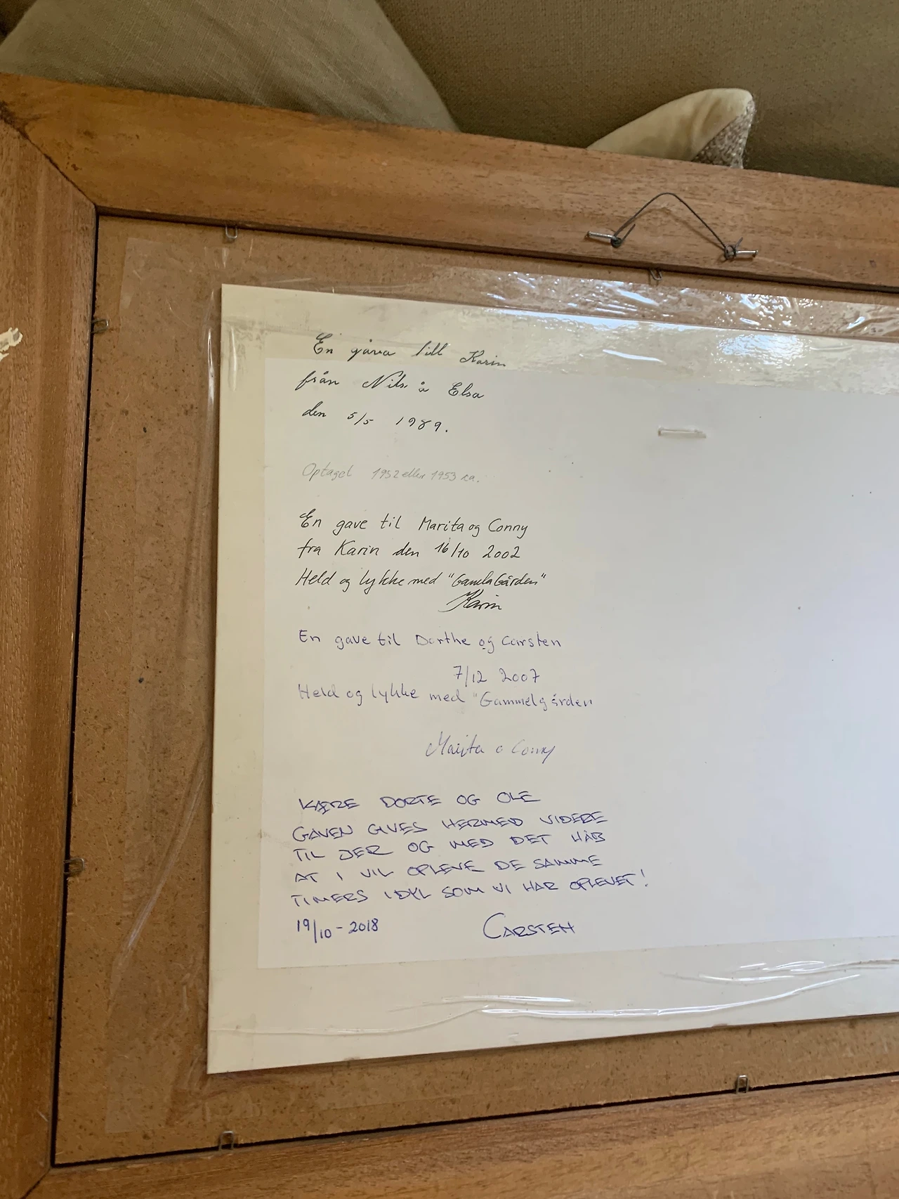 거실에 있던 올레가 갑자기 우리를 부른다. 그러더니 벽에 걸려있던 창고가 그려진 액자를 떼어낸다. 액자 뒷면에는 4개의 메모가 적혀있다. 주인들이 집을 팔 때마다 다음 주인들에게 당부하는 말, 또는 감회 등을 적어서 주었다고 한다. 그게 이 집의 전통이 되었다고 한다. 먼저 주인인 칼스튼이 이 집에서 떠나게 되어 정말 슬프지만 올레와 도르테가 이곳에서 행복을 만끽하길 바란다고 썼다며 통역해주는 올레와 도르테의 얼굴에 어린아이 같은 즐거움이 가득하다.