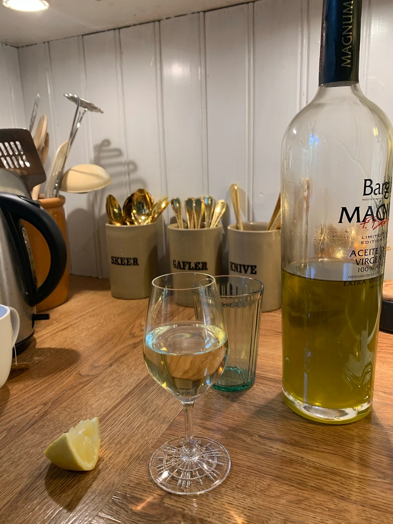 두 조각이면 충분하지 싶어 참기름과 간장을 내놓고 요리를 시작하려는데, 올레가 주방으로 들어온다. 아무 말 없이 핸드폰을 블루투스 스피커로 연결하고는 음악을 틀어준다. 그리고는 차가운 화이트 와인 한잔을 나에게 건넨다. 역시 배운 사람. 내가 음악 들으며 와인 마시며 요리하기를 좋아하는 걸 어떻게 알았는지. 요리가 갑자기 즐거워진다. 여자들이 이런 작은 제스처에 감동하는 걸 아는 남편이다.