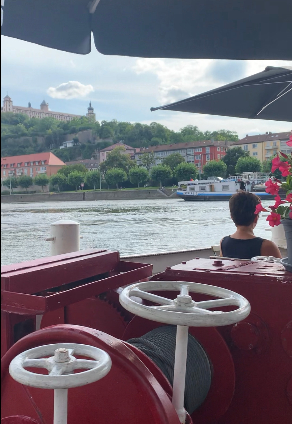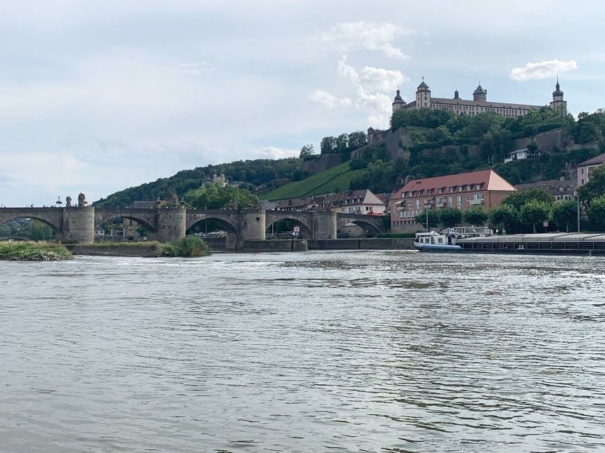 이 다리를 가장 잘 볼 수 있는 곳이 강 옆의 노천 비어 가든인데 이제는 나무가 너무 자라서 전망을 완전히 가리고 있어서 전혀 보이지 않는다. 대신에 우리가 찾아낸 곳은 이 비어가든을 내려오면 강에 떠 있는 보트 카페이다. 브릿지를 향해서 테이블을 잡고 앉으면 강과 올드 마인 브릿지와 산에 걸려있는 마리엔버그 ( Marienburg) 요새 성곽이 그야말로 다 내 것인 느낌이다. 마침 재즈 음악도 틀어주는 주인의 센스 덕에 프랑켄 리즐링이 입안에서 살살 녹는다.
