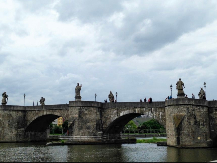 뷔르츠부르크의 하이라이트는 단연 올드 마인 브릿지 (Old Main Bridge) 이다. 여기서 Main 은 메인이 아니라 마인이다. 이 다리 아래로 우리가 많이 들어 봤던 마인강이 흐르기 때문이다. 이 강을 따라서 리버크루즈를 하는 기다란 배도 가끔씩 지나다니는 다리이다.