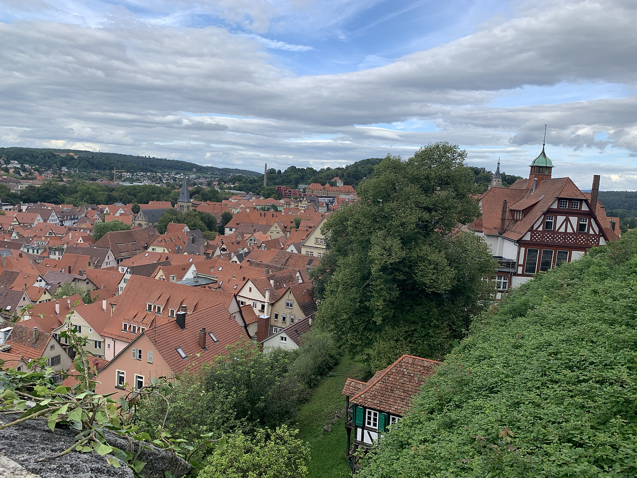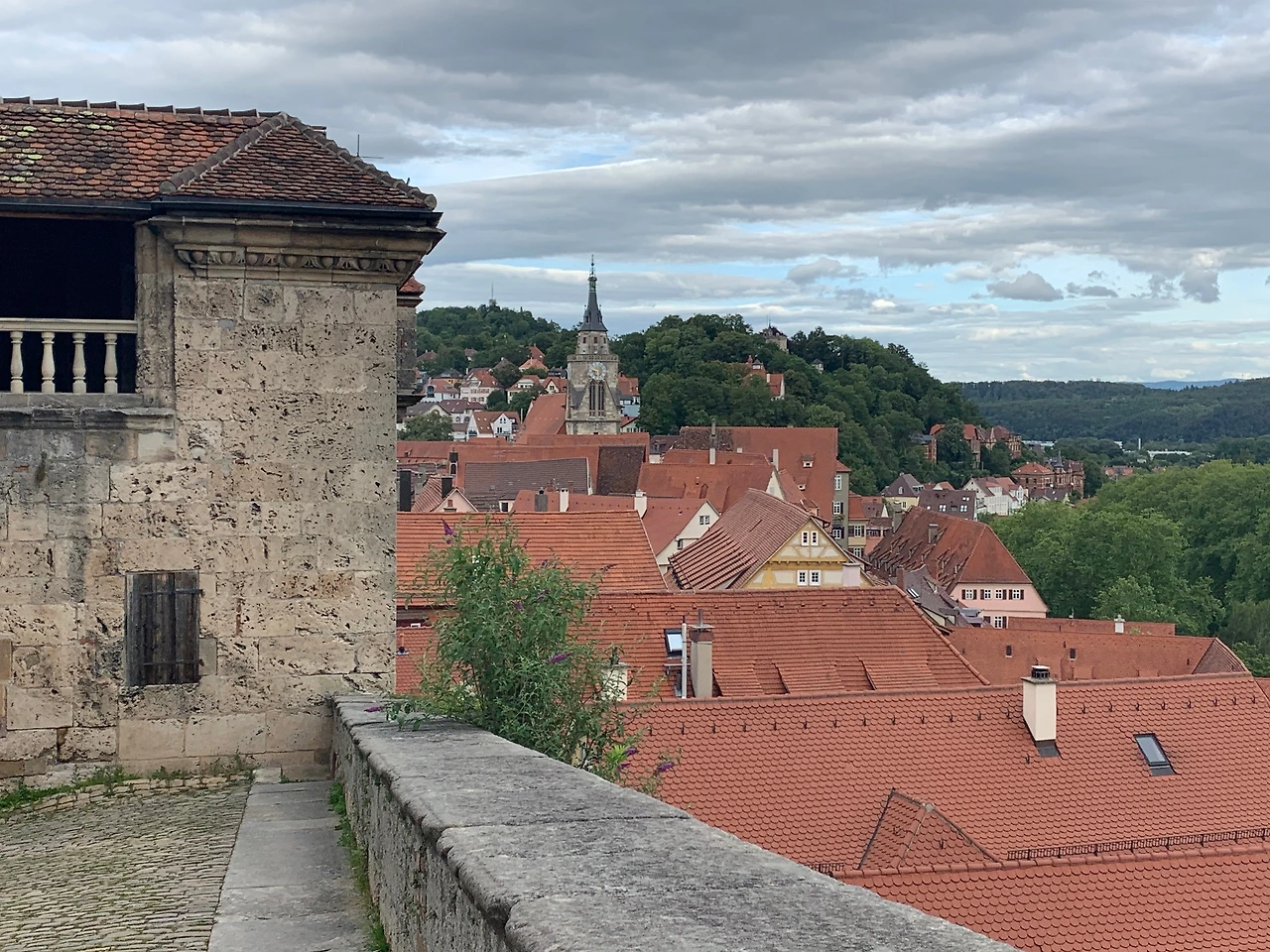 우리는 타운의 제일 높은 곳에 있는 성 (Schloss Hohentubingen)에 올라가 전망을 감상했다. 도시뿐 아니라 넥카강과 멀리 산의 계곡까지도 보인다. 무려 1078년에 이 성에 대한 이야기가 처음 언급이 되었었다니 정말 오래전에 세워진 성이다. 이후 개축과 증축을 반복하면서 16 세기에 르네상스 스타일의 로마식 개선문도 만들어졌다고 한다. 지금은 대학과 여러 기관에서 이 성의 건물들을 사용하고 있어서 그런지 성안에 대학생들과 교수들의 모습이 심심치 않게 보인다.