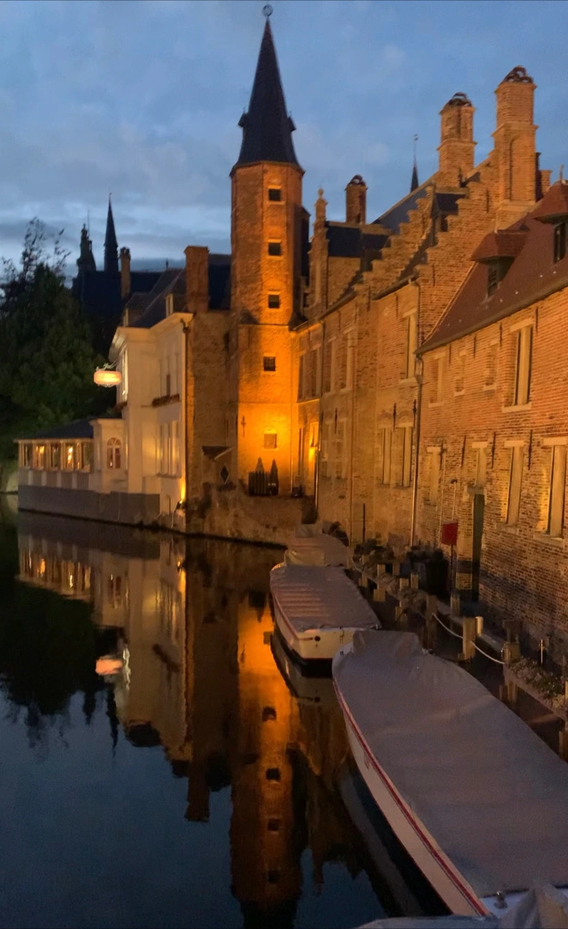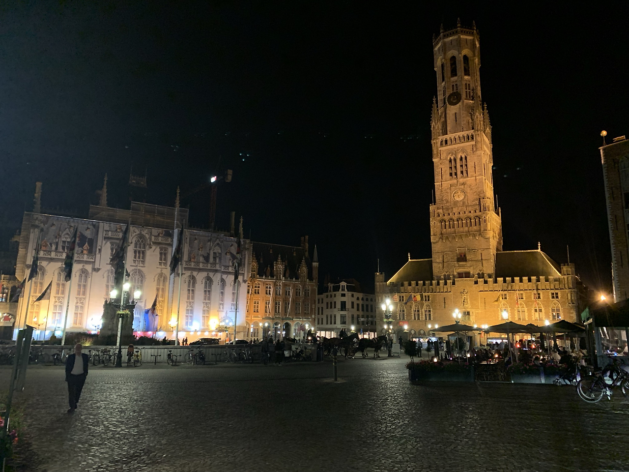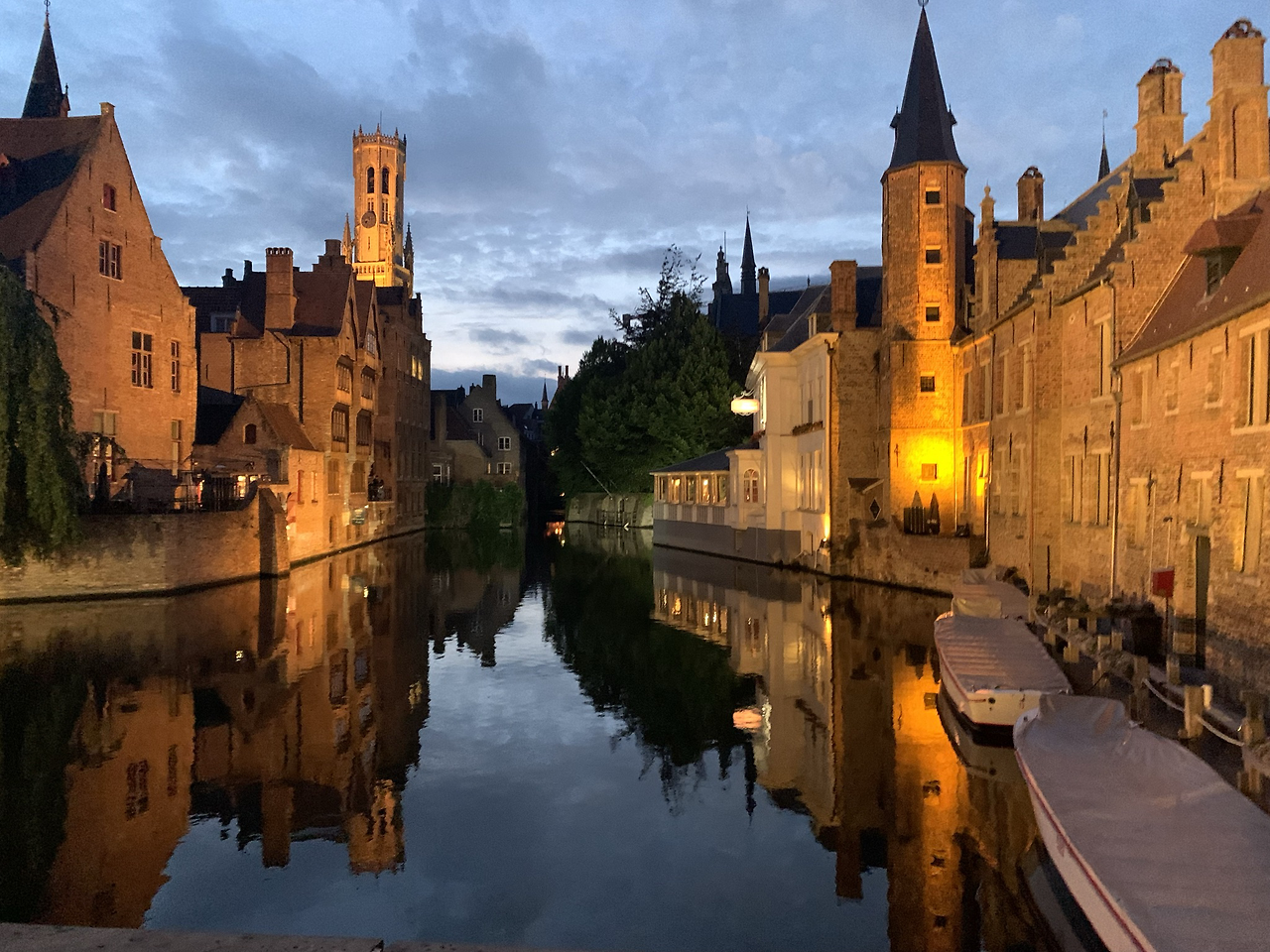 운이 좋게도 우리는 브뤼헤에서 가장 아름다운 전망을 볼 수 있는 방을 예약할 수 있었다. 바로 Rozenhoedkaai Quay라는 브루헤를 대표하는 풍경을 볼 수 있는 곳이다. 집을 나와 다섯 발자국을 떼면 이 풍경이 눈에 들어온다. 우리는 도시 구경을 나가기 전에 창문으로 밖의 전망을 한참 동안 감상했다. 어두워질 때 즈음에 집을 나오니 여기저기 밝혀지기 시작하는 불빛들로 도시가 더 운치 있고 아름답다. 창문으로 보이던 운하와 주위 건물들이 불빛을 받아 고혹적인 모습이다.