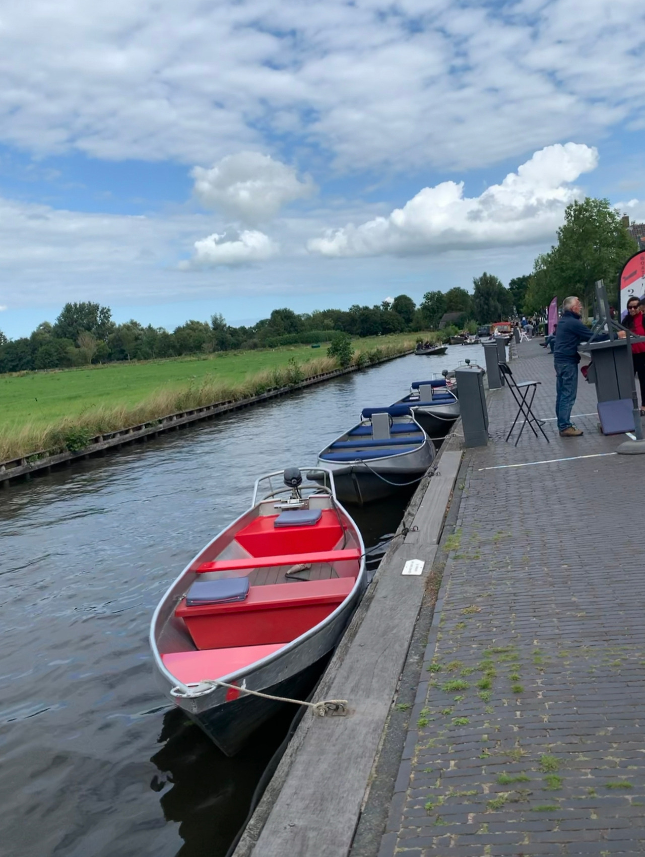 이를 타고 떠나 마을 입구에 이르면 좁은 운하에 보트들이 줄을 지어 가고 있다. 마치 small world에 온 것 같다. 이 짙은 그린색의 운하 양옆으로 예쁜 네덜란드 전통 집들이 잔디며 꽃이며 벤치며 여러 가지 조경과 장식을 뽐내며 그 자태를 드러낸다. 샵들도 있고 레스토랑들도 있고 이 운하를 따라 걷는 사람들도 있다. 군데군데 구름다리도 있고 운하에 옆으로 뻗어나간 더 작은 운하에는 그 집에서 정박해놓은 빨간 작은 보트들도 눈에 띈다. 여기는 진정한 동화나라다.