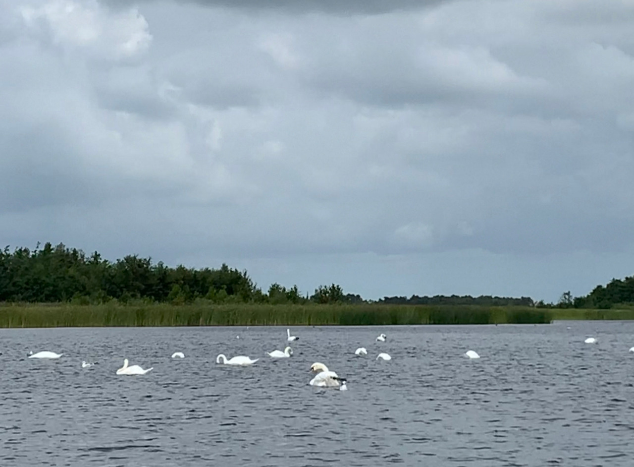 이 작은 운하를 한참 동안 따라가다 보면 끝이 안 보이는 거대한 호수가 나온다. 갑자기 큰 물에 나온 것도 놀라웠는데 멀리 백 마리는 족히 돼 보이는 하얀 새들이 물에 떠 있다. 자세히 들여다보니 백조 떼다. 그런데 그들은 쇼 스테이지 뒤의 비하인드 씬처럼 영 딴짓을 하고 있다. 누구도 사람들을 위해 유유히 우아하게 떠다니는 퍼포먼스를 하지 않는다. 꽥꽥거리고 긴 목을 움직여 몸의 여기저기를 입으로 목욕하고 있고, 영락없이 스테이지 뒤편 모습 같다. 역시 백조는 한두 마리가 신비롭게 떠 다닐 때 훨씬 멋있어 보이나 보다. 너무 많으니 그냥 지나치게 된다.