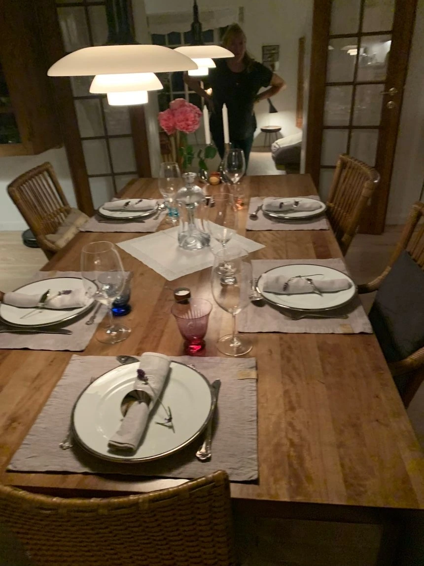 칼스튼이 우리를 올레와 도르테의 집에 데려다준 때는 이미 밤 10시가 가까워 있었다. 원래 7시 반 정도까지는 오기로 했으나 아무래도 이런저런 일이 많아져 버렸다. 차로 2시간 반이나 운전을 해서 디너 테이블 세팅을 멋지게 하고 샴페인과 와인을 준비하고 우리를 기다리고 있던 올레와 도르테의 집에 도착했다. 올레는 샴페인과 와인, 디저트와인까지 세심하게 준비를 해 두었고 도르테는 웰컴주인 샴페인과 함께 먹을 치즈와 야채가 살짝 들어간 빵을 비롯하여 메인 요리와 디저트까지 완벽하게 준비해 두고 있었다. 지난번에는 내가 부모님을 모시고 오는 바람에 이들을 잘 알 기회가 없었는데, 오늘 저녁 끝없이 이어지는 대화를 하면서 벌써 십년지기는 된 듯 가까워졌다. 저녁시간 내내 진실한 대화와 농담, 그리고 웃음이 그치지 않았다. 이렇게 마음 편한 대화를 나누어 본 게 언제였더라.
