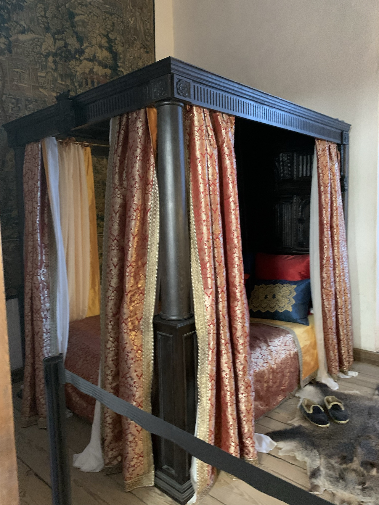 프레드릭 2세가 썼던 침대. 사방의 커튼은 추위를 막기위함이었다고 한다.