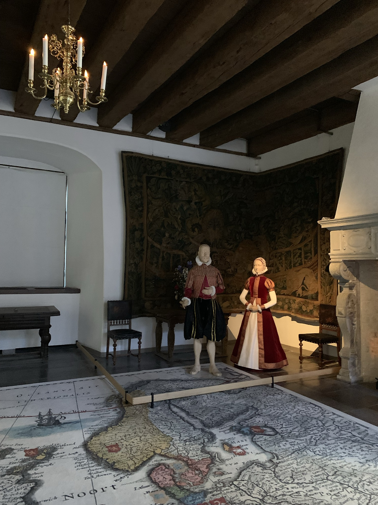 남자들이 모여 사냥을 한다던가 모임을 할 때면 왕비와 공작부인들은 자기들끼리 모여 따로 사교 모임을 가졌다고 하는데 그 방에 그때의 식탁이 재현되어 있었다. 왕비가 식사를 하며 다른 여인네들과 사교를 하던 이 방 저쪽 구석에 작은 방을 하나 만들어 2층 정도 되는 높이에 구멍을 두 개를 뚫어 놓았다. 사교 모임이 있을 때 프랑스에서 데려온 유행가 가수가 이 구멍에 걸터앉아 노래를 하도록 했다고 한다. 흥미로운 사실은 그 시절의 식탁의 먹거리중 가장 비싼 것은 레몬이었다고 한다. 지금 화폐가치로 환산하면 레몬 하나에 700유로 정도였다고 하니 후덜덜한 가격이다. 북구유럽이라는 위치를 생각해볼 때 레몬을 공수하기가 쉽지 않았기 때문이었으리라 쉽게 예측해 볼 수 있다. 약 16세기에는 식사 시에 자신의 나이프를 지참을 하고 식사 초대에 응했다고 한다. 음식을 자를 나이프는 있었으나 포크는 없어서 손으로 집어 먹었다고 하는데, 포크가 없었다는 게 참 예상외다. 하지만 수저는 있었을 것이다. 수프를 떠먹는 건 동서고금을 막론하고 필수였을테니. 먹을 것이 풍족하지 않을 때 발달하는 음식이 국이고 수프이다. 얼마 안 되는 재료를 물에 넣고 끓여 양을 늘려 두고두고 먹어야 했을테니 말이다.