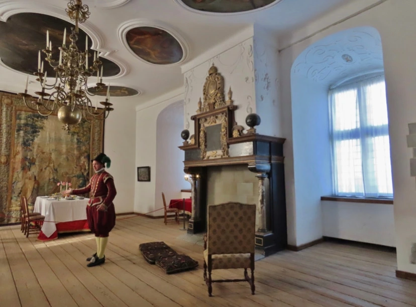 사랑과 부와 권력을 모두 가진 왕으로 기록되어 있는 프레드릭 2세는 자신의 권력과 부를 과시하기 위해 유럽의 왕과 왕비들 그리고 귀족들을 초빙하여 성대한 파티를 자주 열었다고 한다. 어마어마하게 큰 무도회장은 중세의 댄스음악을 연주하는 음악 밴드와 단아한 춤을 추는 남녀들, 먹고 마시며 파티를 즐기는 사람들로 꽤나 시끌벅적했을 것이다. 프레드릭 2세는 독특한 자기만의 건배 퍼포먼스를 파티때마다 행했다. 그가 건배를 하려고 잔을 들면, 왕의 군악대가 드럼을 두구두구 두구두구 울려댄다. 그러면 그것을 신호로 밖에 있는 트럼펫 주자들이 트럼펫을 불었고. 그를 신호로 축포를 쏘았다고 한다. 대포를 얼마나 많이 쏘았는지 때때로 성의 커다란 창문들이 깨지곤 했는데 왕은 그것이 자신의 부와 권력의 상징이라며 전혀 개의치 않았다. 또 왕의 침실과 왕비의 침실은 따로 떨어져 있었는데 이렇게 방을 두개 가진 것도 부의 상징이었다고 한다. 그런데 자세히보면 방은 두방 다 조그맣다. 추위를 견디기 위해 방은 일부러 작게 만들고 벽난로는 큼직하게 만들어 두었다고 한다. 물론 이 두 방 사이에는 통하는 문이 있어 부부 금슬에는 영향을 미치지 않았을 듯하다. 왕의 침대의 사방에 포스트를 올리고 이를 화려한 커튼으로 막은 이유 역시 추위를 막기 위해서였다는데 내 눈에는 화려한 드레이프가 멋지게만 보인다.