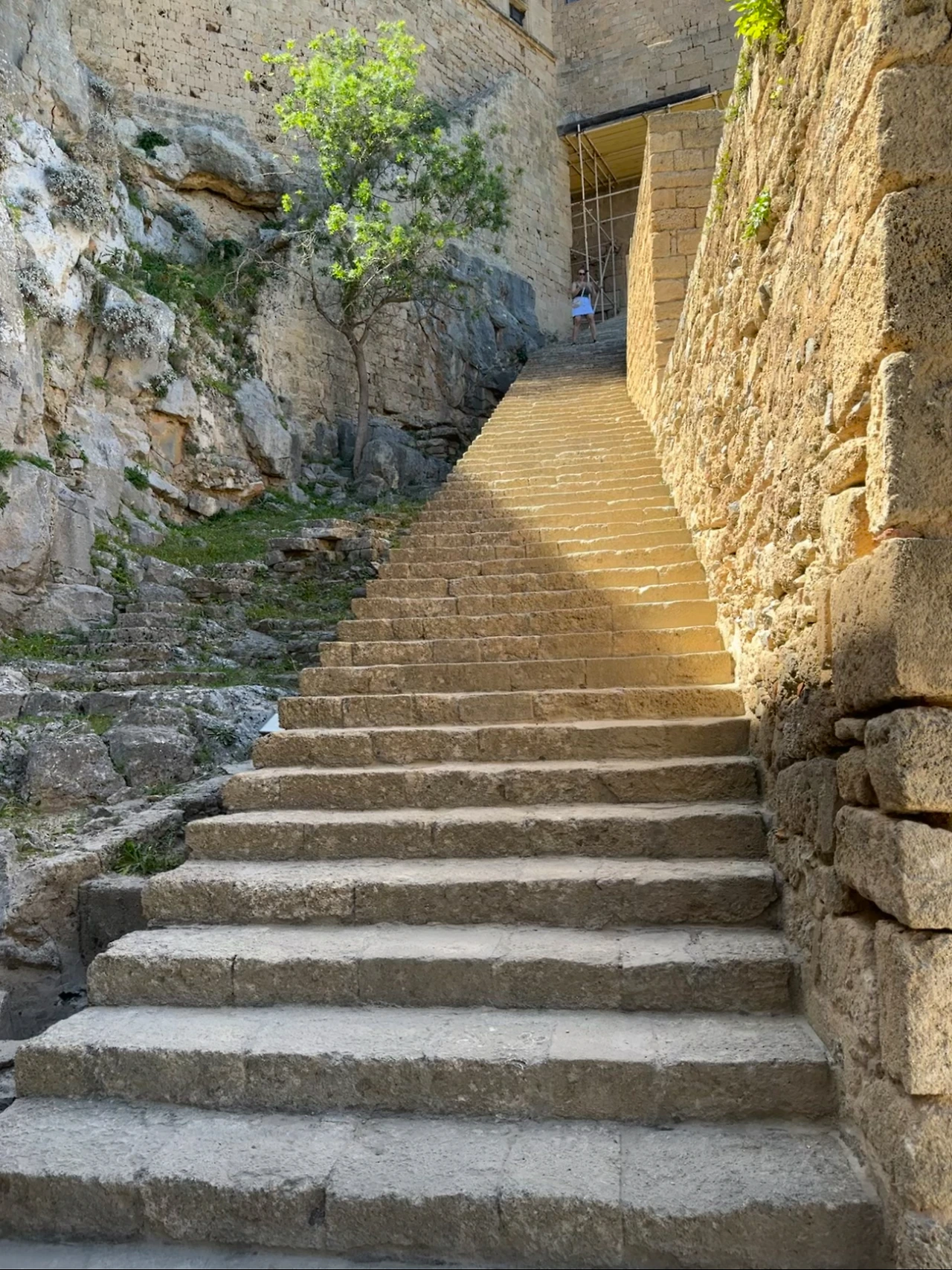아크로폴리스까지 올라가는 길은 생각보다 가파르고 구불구불했습니다. 일단 미로같이 좁고 복잡한 골목길들을 통과해야 헸고요. 입구에 다다라서는 좁은 골목길, 당나귀 길, 돌계단을 따라 한 걸음씩 올랐어요. 그러는 동안 고대 유적들이 하나둘씩 눈앞에 모습을 드러냈습니다.